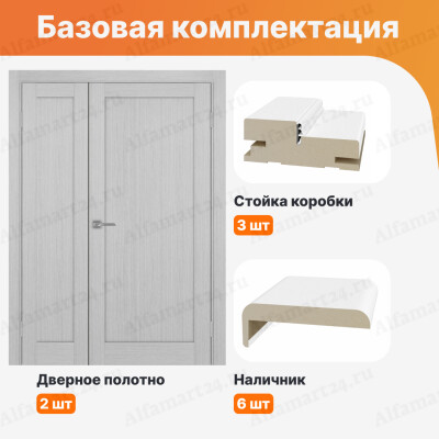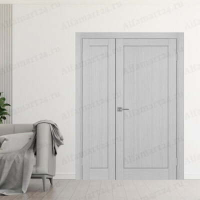 Дверь двухстворчатая экошпон Optima Porte глухая Тоскана_640.11 багет ( Белый снежный )