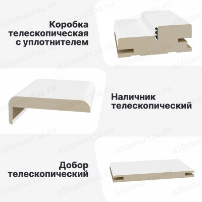 Телескопический погонаж - это система, состоящая из трех позиций: доборный брус, дверная коробка и наличник. У каждого из этих элементов есть пазы, использующиеся при монтаже и позволяющие обходиться без гвоздей. Благодаря этому можно избежать повреждения поверхности погонажа.