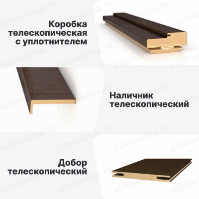 Телескопический погонаж - это система, состоящая из трех позиций: доборный брус, дверная коробка и наличник. У каждого из этих элементов есть пазы, использующиеся при монтаже и позволяющие обходиться без гвоздей. Благодаря этому можно избежать повреждения поверхности погонажа.