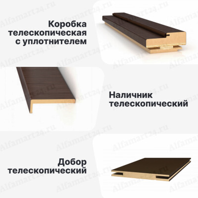 Дверной погонаж — это комплекс деталей, которые вместе образуют проем, в который в последствие устанавливается дверное полотно. Бывает двух типов телескопический и прибивной.