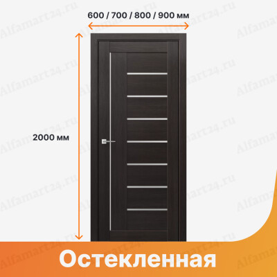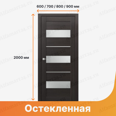 Дверь экошпон Дверона остекленная Сигма 2 ДО (Орех бисмарк / стекло лакобель Черное)