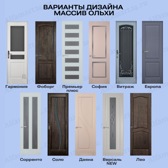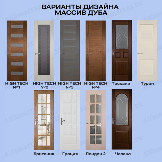 Двери возможно изготовить в более чем 50 дизайнах. Популярными дизайнами являются двери с большим количеством стекла, либо со стеклом в половину или стеклом решеткой. Стоит обратит внимание на варианты дверей без стекла . Любой из перечисленных вариантов можно подобрать, посчитать и согласовать с нашими менежерами.